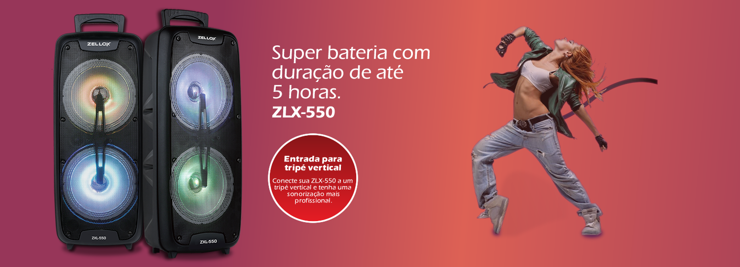 Com qualidade de som inacreditável e um design arrojado, a ZLX-550 ainda conta com uma super bateria que dura até 5 horas. As luzes de led dão um show a parte, deixando sua festa muito mais animada.