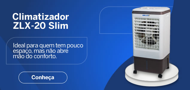 O Climatizador de Ar ZLX-20 Slim da Zellox é perfeito para ambientes menores, possui reservatório com capacidade para 20 litros, três velocidades de ventilação. Ideal para quem tem pouco espeço, mas não abre mão do conforto.